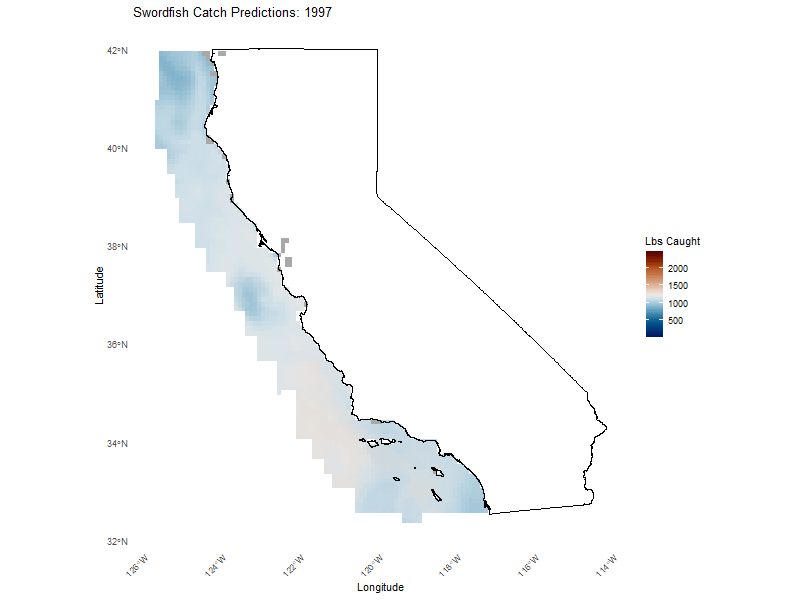 My research delves into marine spatial ecology, exploring how marine species interact with their dynamic ocean environment over space and time. This understanding is vital for developing effective, timely conservation and management strategies, particularly as our oceans face unprecedented warming and disruptive marine heatwaves that significantly impact ecosystems and fisheries.My Master's work focuses on the proposed Chumash Heritage National Marine Sanctuary, where I am integrating seascape ecology principles into species distribution models. Specifically, I model the distribution of swordfish (Xiphias gladius), a culturally significant species for the Chumash People and a valuable fishery in the California Current. Because swordfish are challenging to study directly, fisheries data models offer crucial insights into their ecology and allow us to forecast how their distributions might shift under future climate change scenarios.
